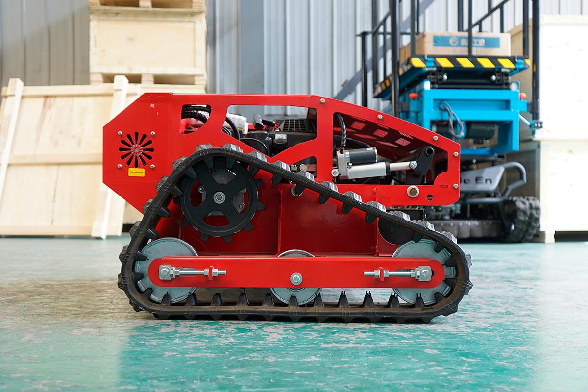 Orchard and Nursery Trimming: In orchards or nurseries, the 10mm-180mm adjustable mower height comes in handy -- lower the height to mow the lawn, higher the height to avoid fruit tree seedlings. Crawler walking will not compact the soil, 900mm width flexible shuttle in the gap between the fruit trees, remote control operation to avoid touching the seedlings, so that the orchard is clean and does not damage the crops.