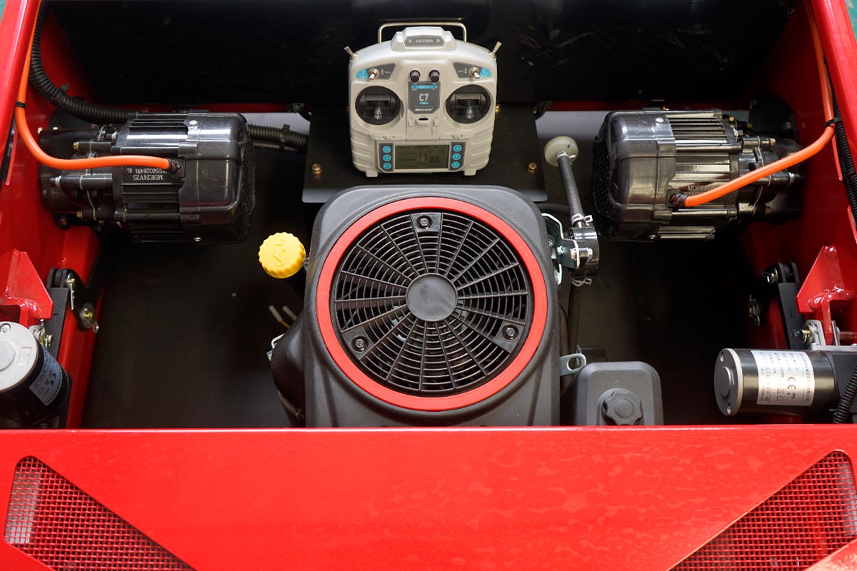 Remote control safety, convenient operation: 200m farthest remote control distance, allowing the operator to stay away from steep slopes, high grass and other dangerous areas, standing in the safety zone can complete the operation, electric start design with one-key start, simple and convenient operation, reducing labor intensity.