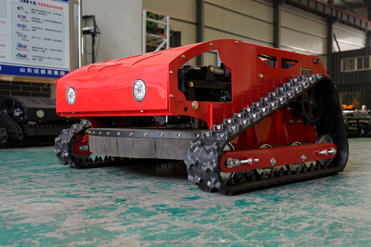Orchard lawn large area trimming: in the orchard or large lawn, 800mm wide mowing width significantly improves working efficiency and reduces the number of round trips. 1170mm width of the machine body can be flexibly moved between the rows of fruit trees, and the crawler travels without compacting the soil to protect the root system of the fruit trees. 10mm-180mm adjustable height of the cutting platform, which is capable of low-cutting to keep the lawn smooth, and also capable of high-cutting to avoid the orchard weeds from fighting for nutrients with the fruit trees. Nutrients.