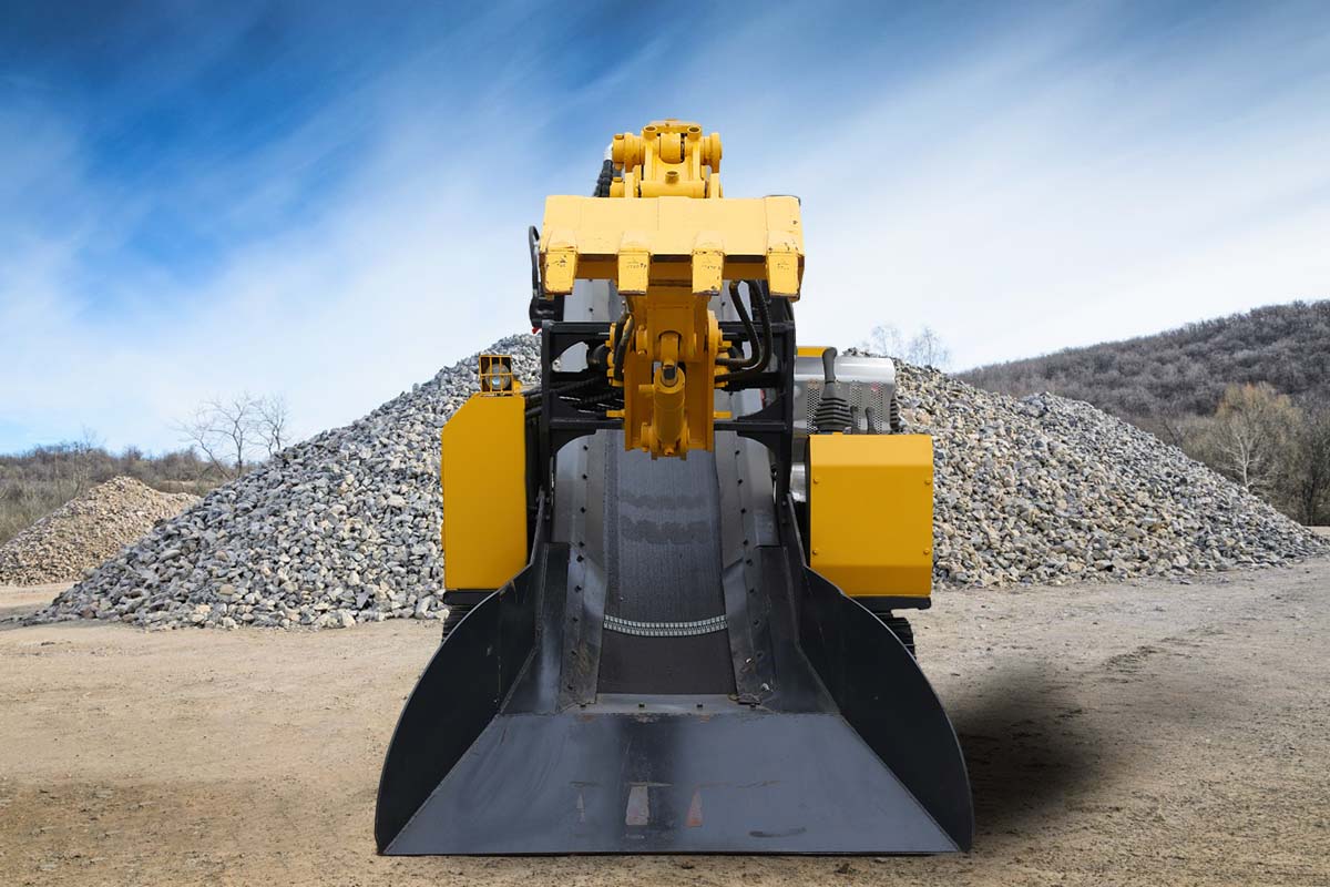 Tunnel construction: in the narrow space of the tunnel, its width of 1650mm and height of 1750mm, can be freely shuttled, the minimum turning radius of 3600mm to ensure that the flexible turning in the curves; 1800mm - 2700mm digging height and ≥ 1600mm digging distance, accurate picking of slag in the tunnel, through the conveyor belt for rapid transit, to protect the tunnel digging.