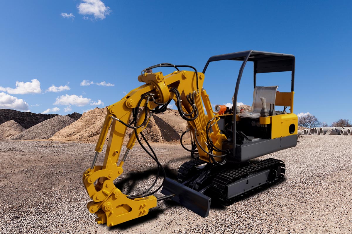 Roadway support and repair: In the underground mining roadway or tunneling roadway, the base width of 950mm can travel flexibly between the supports, and the minimum turning radius of the track of ≤1.7m is convenient for turning in the limited space. The maximum digging height of ≥3600mm is able to carry and install the support materials at the top of the roadway, and the 360° rotating angle makes the operation more flexible, and it is easy to complete the support repair work of the roadway roof and two gangs.